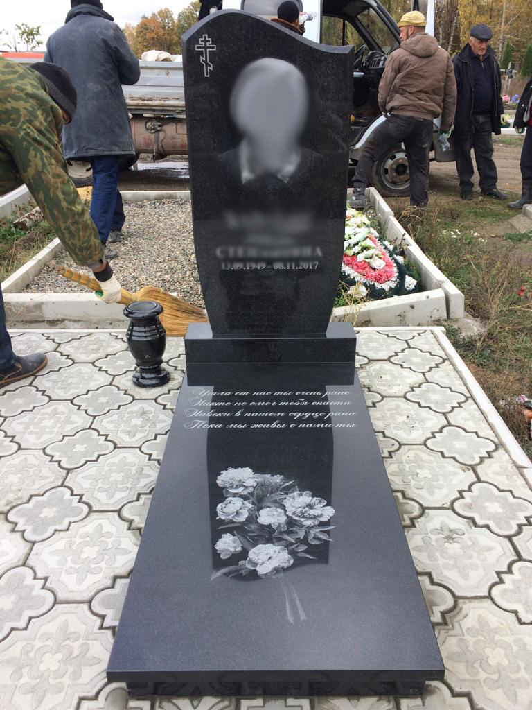 В течение 14 дней камень вырезается по макету, обрабатывается на специализированном оборудовании и на него наносится портрет.